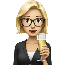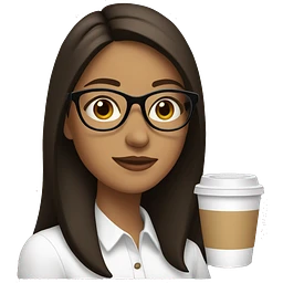 White girl with long black hair in a low ponytail, cat eye brown glasses in a black shirt drinking iced coffee emoji