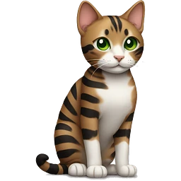 Brown, black stripes, white patches, Persian cat with green eyes emoji