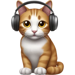 cat with headphones, simplified, bold shapes, suitable for a website icon emoji