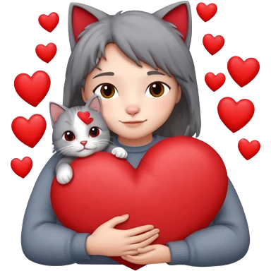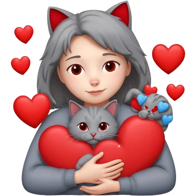 Brunette girl with cinnamon skin hugging a grey cat with green eyes emoji