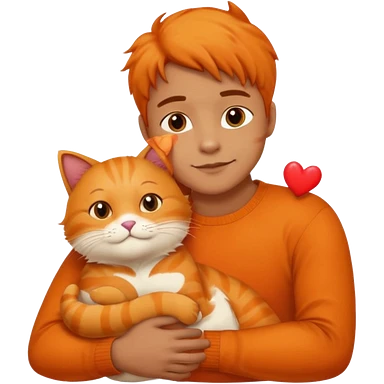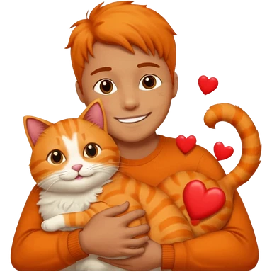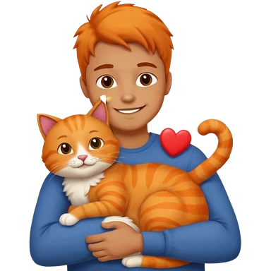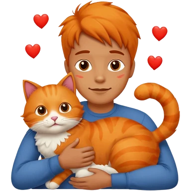 Ginger haired girl with blue eyes hugging a grey cat with yellow eyes emoji
