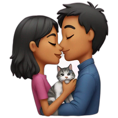 o woman with brown hair, dark brown eyes wear a white crop hold a grey cat and kiss it emoji