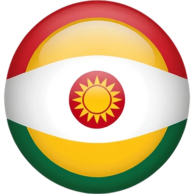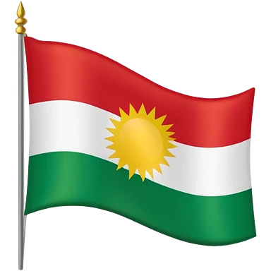 Emoji-style Kurdistan flag: red, white with yellow sun (21 rays), green stripes, bright and simple.” emoji