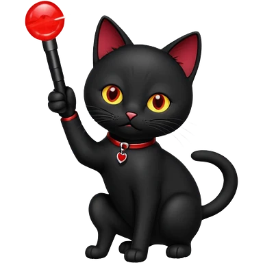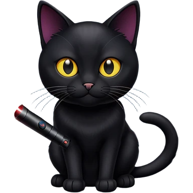Pale girl with black eyeshadow and burgundy hair with an emo haircut that’s long and layered holding a black cat emoji