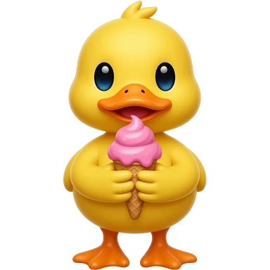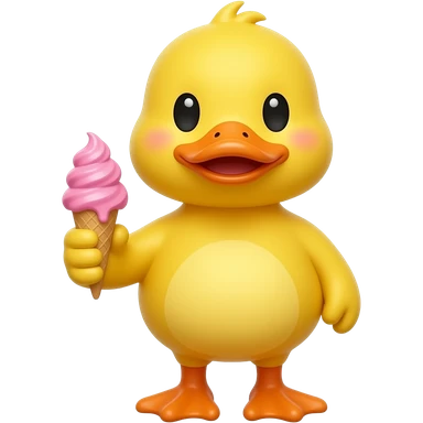 yellow duck standing pose front view hold pink color ice cream in one hand emoji
