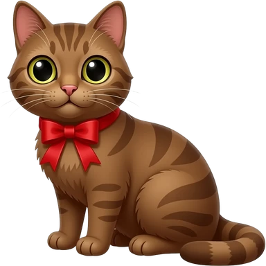 brown cat sitting pose with red ribbon pin emoji