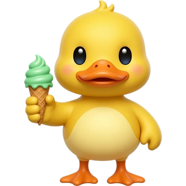 yellow duck standing pose front view hold green color ice cream in one hand emoji