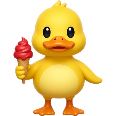 yellow duck standing pose front view hold red color ice cream in one hand emoji
