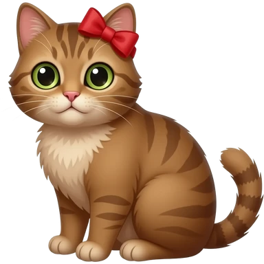 brown cat sitting pose with red bow clip on head emoji