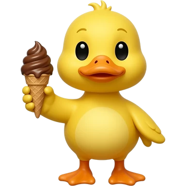 yellow duck standing pose front view hold brown color ice cream in one hand emoji
