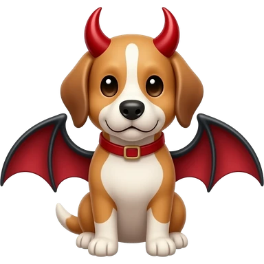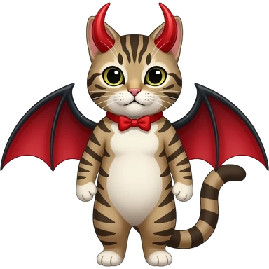 brown cat sitting pose front view with red devil horns and bat wings emoji