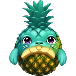 teal-colored seal with a purple-colored pineapple on its head emoji