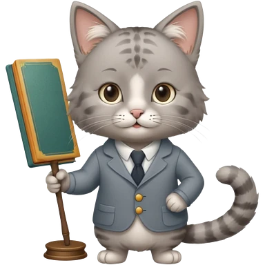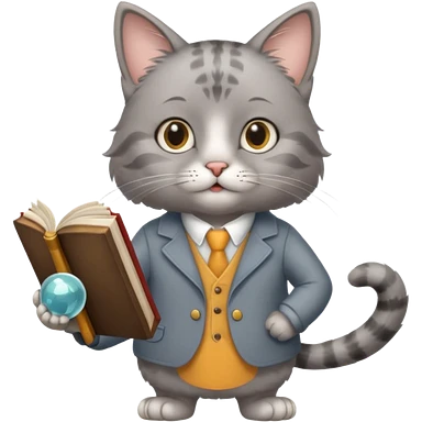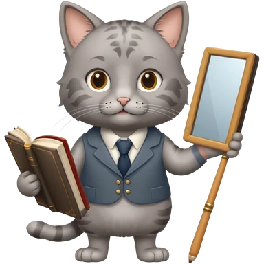 A cat with a mirror on its feet, a book in one hand, a teacher's stick in the other, and hair that looks like Einstein's. emoji