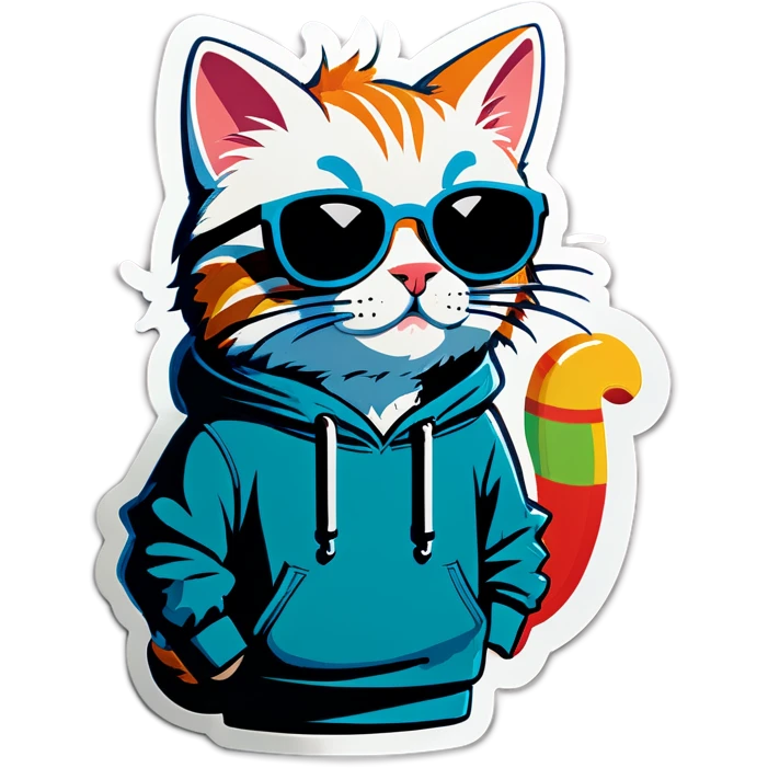 Cat with sunglasses and hoodie saying nice emoji