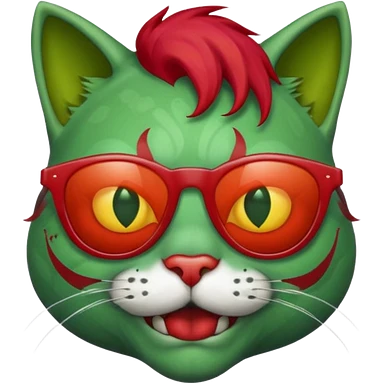Zombie cat with sun glasses and red hair and joker nose emoji