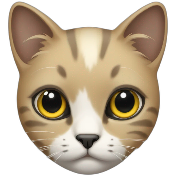 cat with white head and at the top of the head some black color, ears are white, yellow brown eyes, dirty looking emoji | AI Emoji Generator