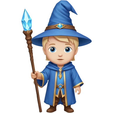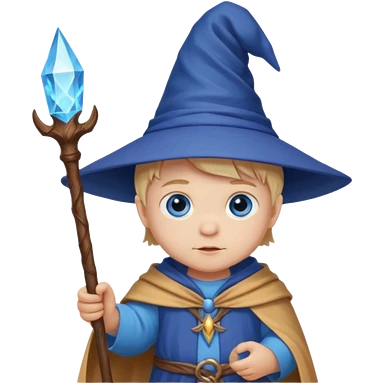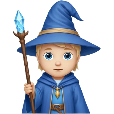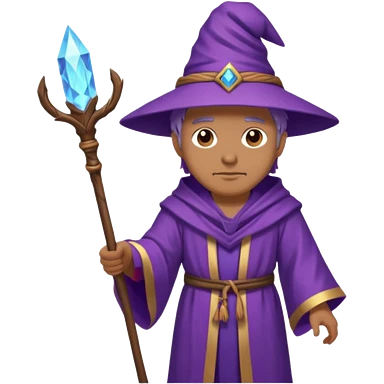 youthful wizard holding a staff, wearing a wizard hat emoji