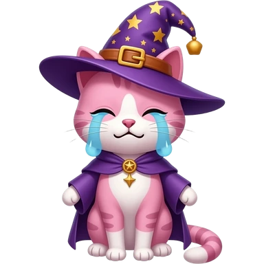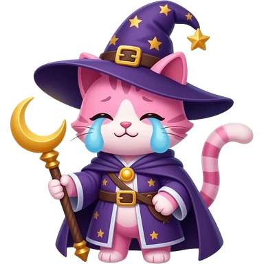 pink cat wizard with moon ward crying emoji