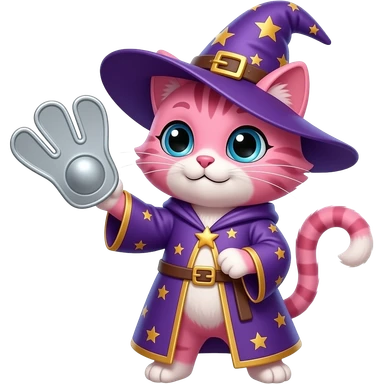pink cat wizard waving emoji