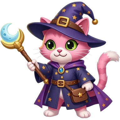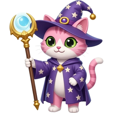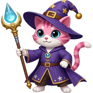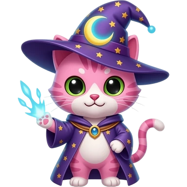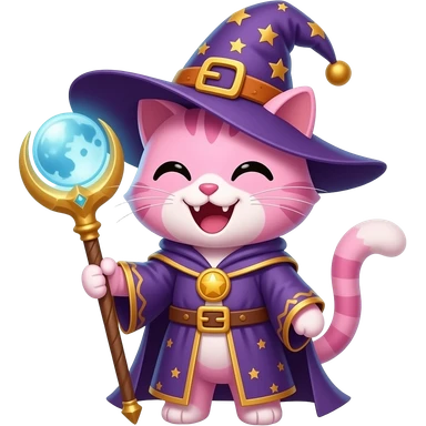 pink cat wizard with moon ward attacking emoji