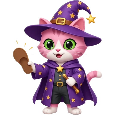 pink cat wizard hitting with a slipper emoji