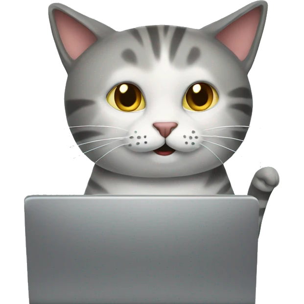 Cat wearing spectacles and smoking a cigar and working on a mac computer emoji