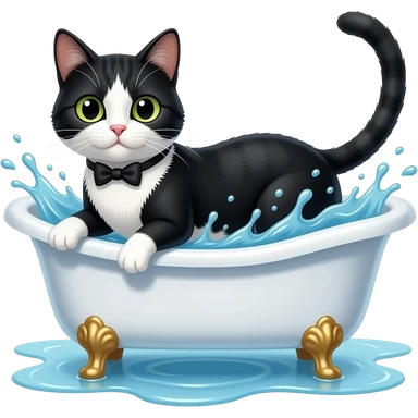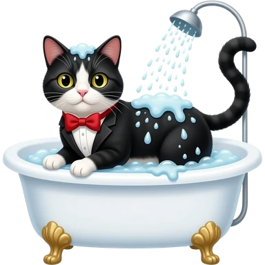Cat shower in bathtub. A tuxedo cat emoji
