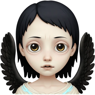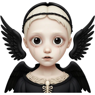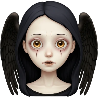 Skinless angel face, exposed bone and sinew, hollow eyes, dark gothic icon emoji