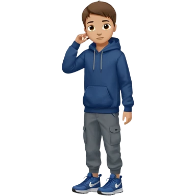 boy with brown hair light skin dark blue hoodie black cargo pants grey nike shoes emoji