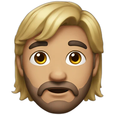 Cabaret portrait of a bald man with a whitened face and made-up eyes and mouth, a huge, wide-open mouth and a startled look emoji