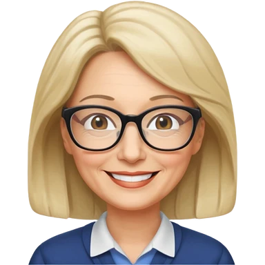 girl with long straight hair. she has blue eyes and brown eyebrow. she is a cute girl. she is a teacher. she is wearing glasses emoji