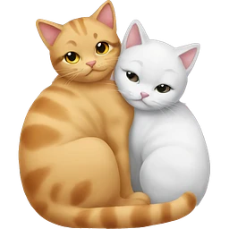 Two cats cuddling 1 is a grey and white cat, the other is a brown tabby emoji