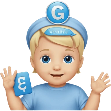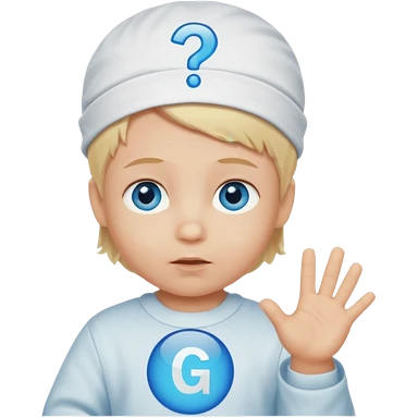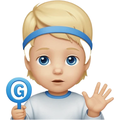 Caucasian blond hair blue eyed infant baby with a genius sign over it’s head emoji | AI Emoji Generator