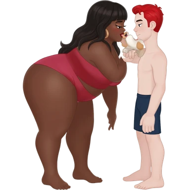 Caucasian brunette lady full body with skinny top half of body and large bottom half emoji | AI Emoji Generator