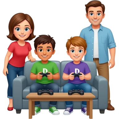 2 TEENAGERS PLAYING PLAYSTATION AT HOME, MOM AND DAD WATCHING THEM emoji