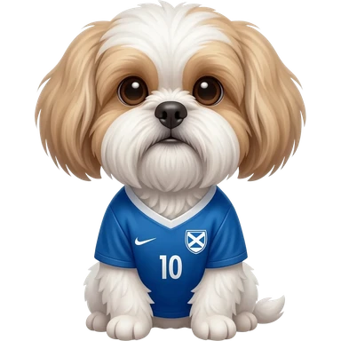 white and light brown shih zhu wearing a scotland soccer jersey v neck 2026 work cup emoji