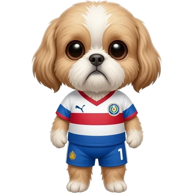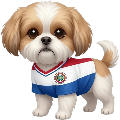 white and light brown shih zhu wearing a Paraguay soccer jersey v neck 2026 work cup emoji