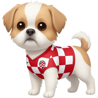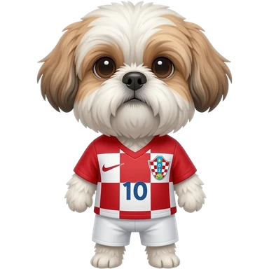 white and light brown shih zhu wearing a Croatia soccer jersey v neck 2026 work cup emoji