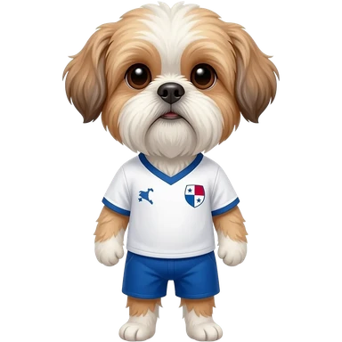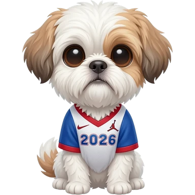 white and light brown shih zhu wearing a USA soccer jersey v neck 2026 work cup emoji