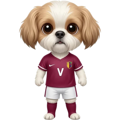 white and light brown shih zhu wearing a German soccer jersey v neck 2026 work cup emoji