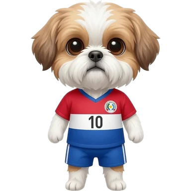 white and light brown shih zhu wearing a Paraguay soccer jersey v neck 2026 work cup emoji