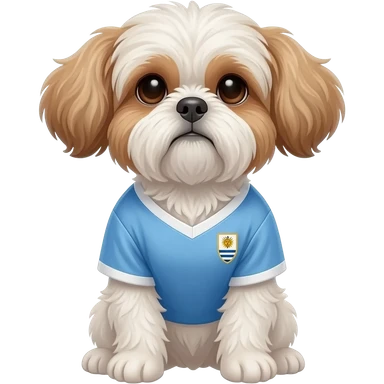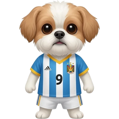 white and light brown shih zhu wearing a Argentina soccer jersey v neck 2026 work cup emoji