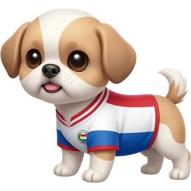 white and light brown shih zhu wearing a Curacao soccer jersey v neck 2026 work cup emoji