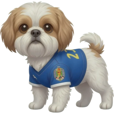 white and light brown shih zhu wearing a Brazil soccer jersey v neck 2026 work cup emoji