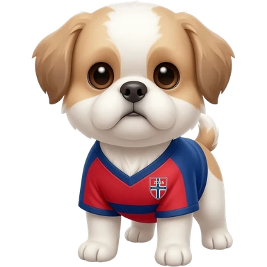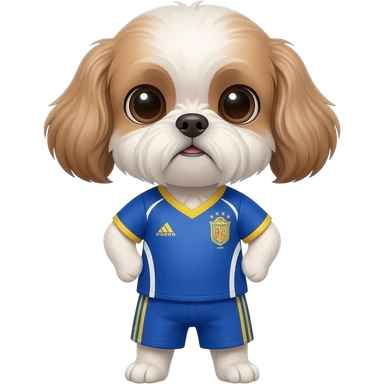 white and light brown shih zhu wearing a France soccer jersey v neck 2026 work cup emoji