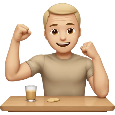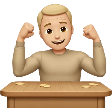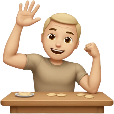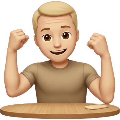 create a old style animated emoji with man leaning with forhead on left arm while hitting table repeatedly with right hand fist while laughing really hard so body shaking emoji