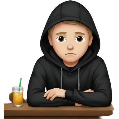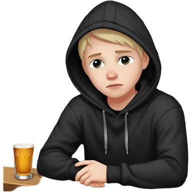 Caucasian in black hoodie sitting sad at bar emoji | AI Emoji Generator