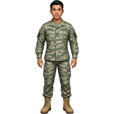 Caucasian man airman battle uniform and tan combat boots full body emoji | AI Emoji Generator