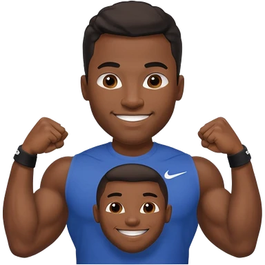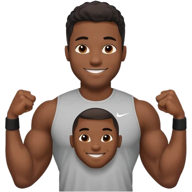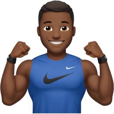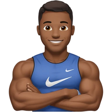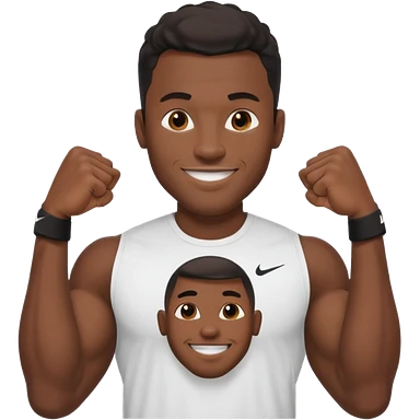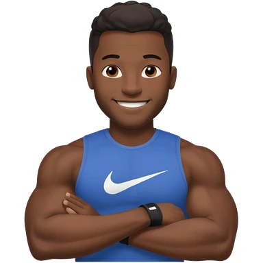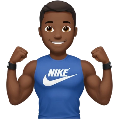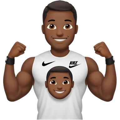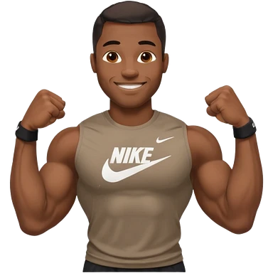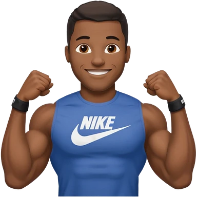 Jock black man smiling very big biceps wearing “Nike” t shirt emoji
