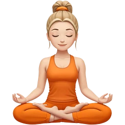 caucasian woman with ponytail in lotus position meditating, eyes closed with a slight smile, peaceful expression, orange yoga clothes emoji | AI Emoji Generator